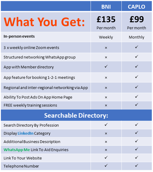 Let’s compare it with BNI. It’s NOT a direct competitor. And as a former BNI member, I still do recommend it to people starting out in business.